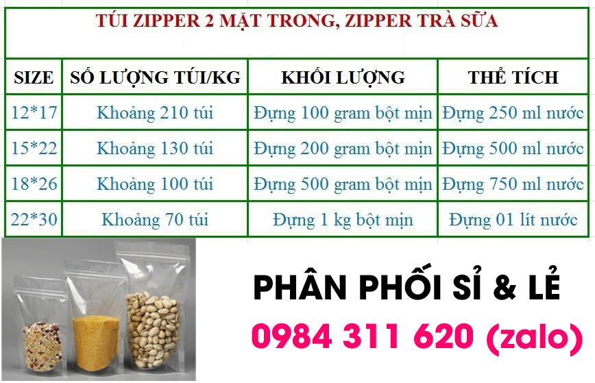 Chúng tôi chuyên cung cấp túi zipper đáy đứng 2 mặt trong suốt,